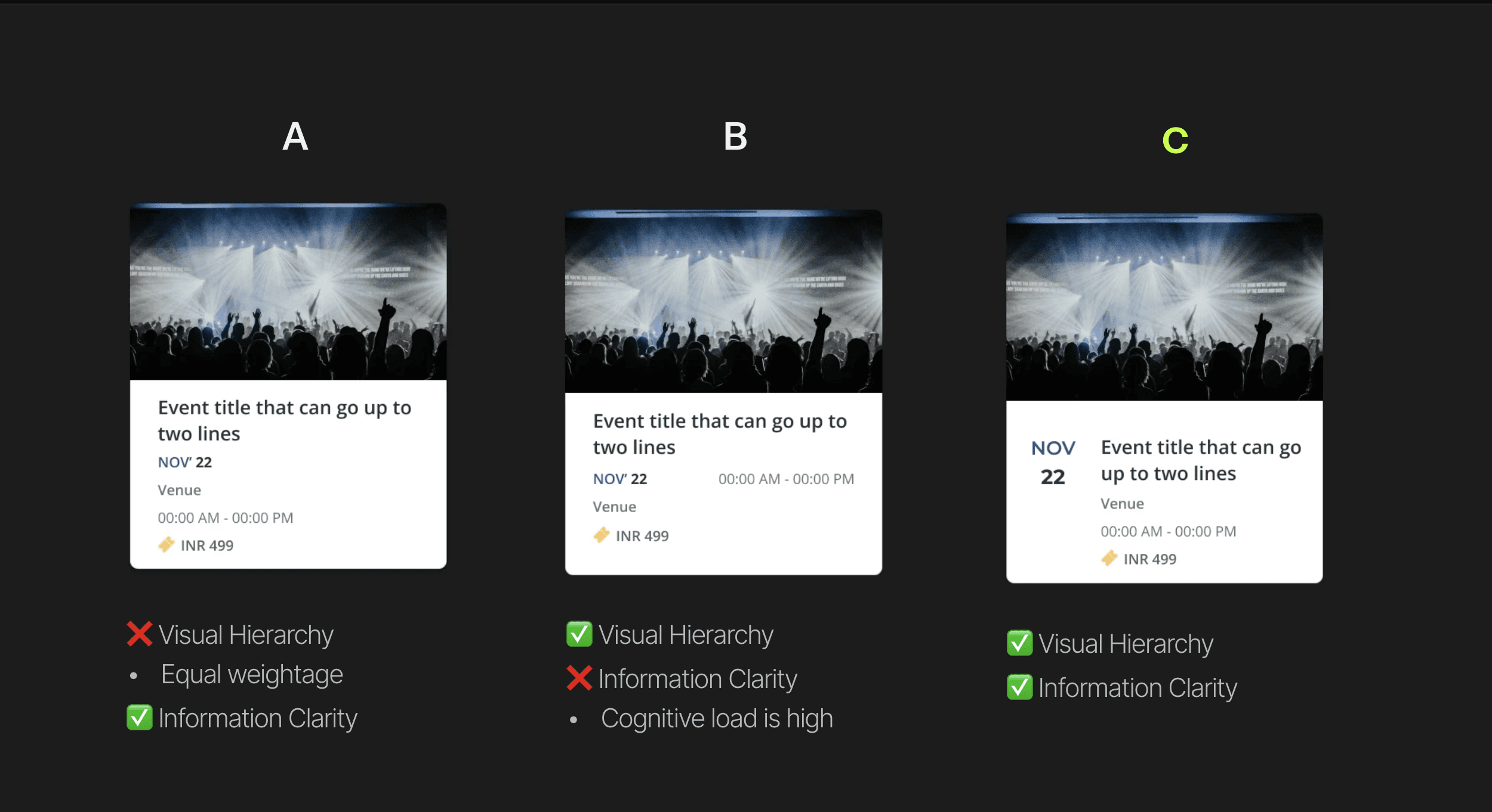 We chose design A because it's clear, action button pops, and has just the right white space.